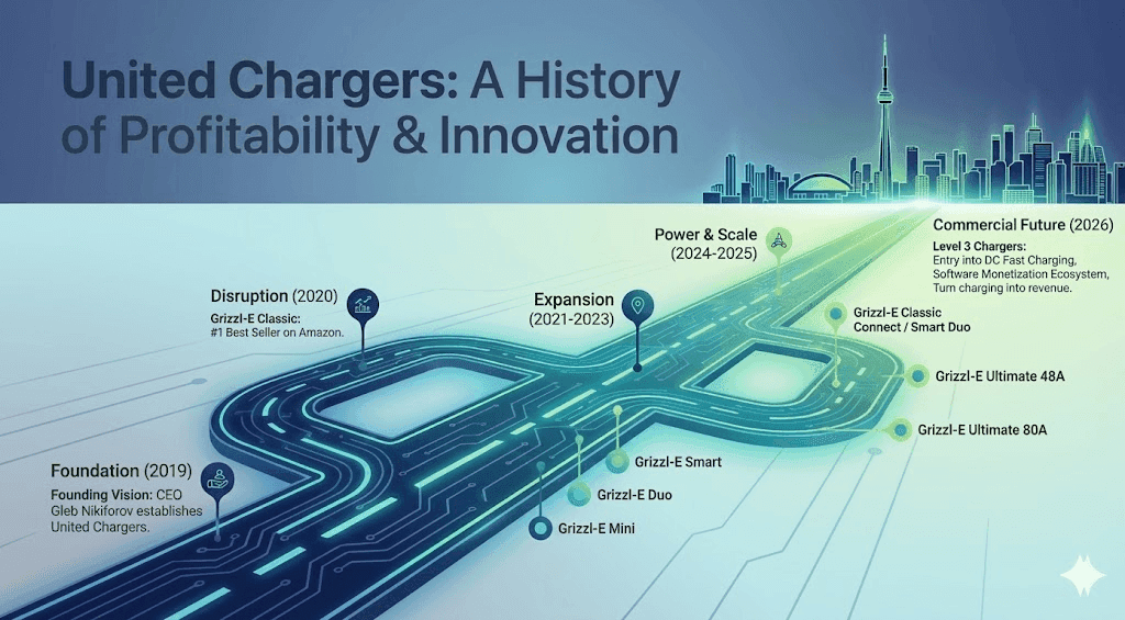 2019 | The Vision CEO and EV advocate Gleb Nikiforov founded United Chargers with a singular mission: to accelerate electric vehicle adoption through practical and affordable charging solutions.