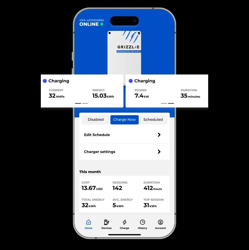 Simple to set up with any Grizzl-E Wi-Fi connected charger including the Grizzl-E Smart, Grizzl-E Ultimate, and Grizzl-E Ultimate 48A.