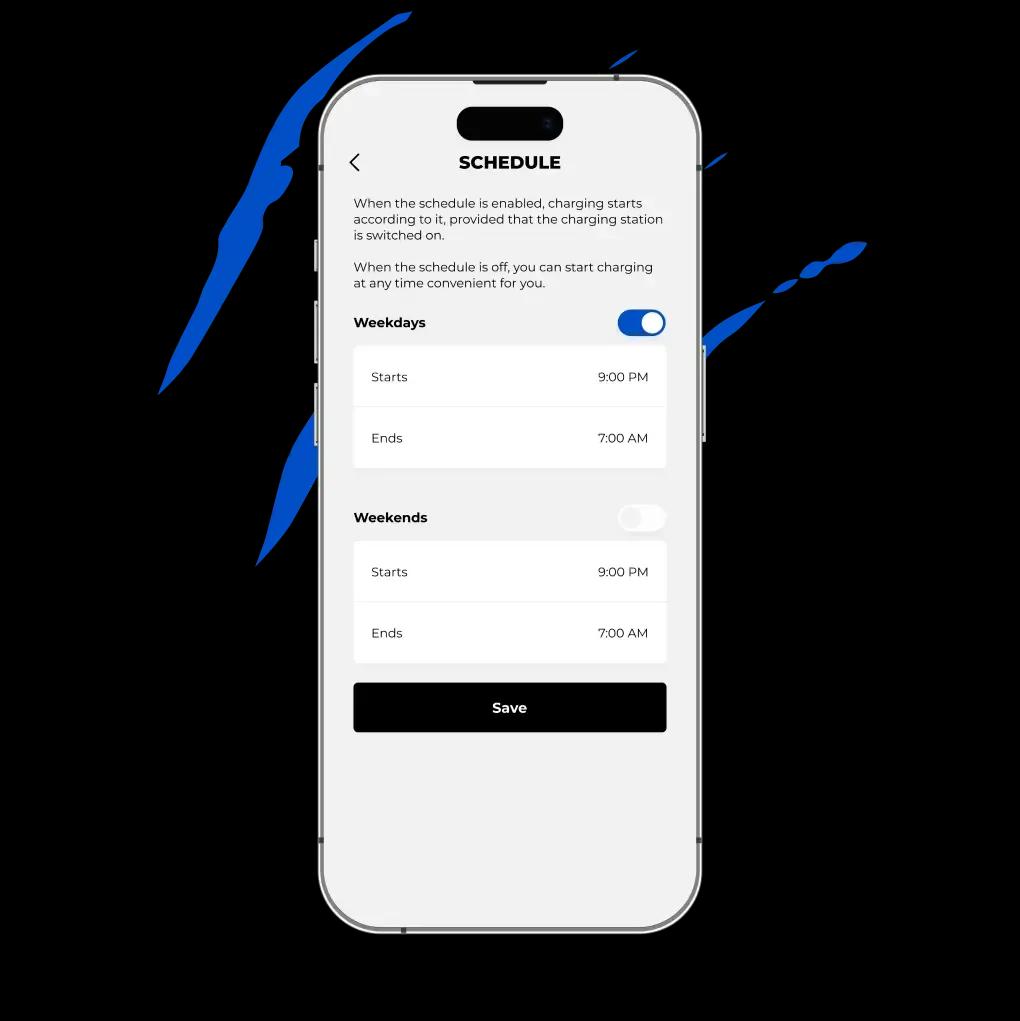 In our application, you can view the charge history and track expenses. If your plans change, you have the option to reschedule your charging session or start it right away.